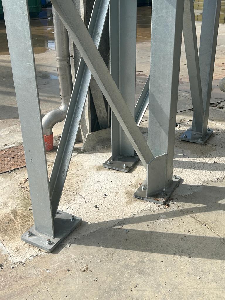 Il progetto è stato sviluppato per le opere strutturali necessarie alla realizzazione di un supporto per il passaggio in quota di un tratto di tubazione dell’impianto di captazione aria. Nello specifico, la nuova struttura verrà realizzata interamente in carpenteria metallica di acciaio e troverà collocazione nel piazzale interno dell’azienda.